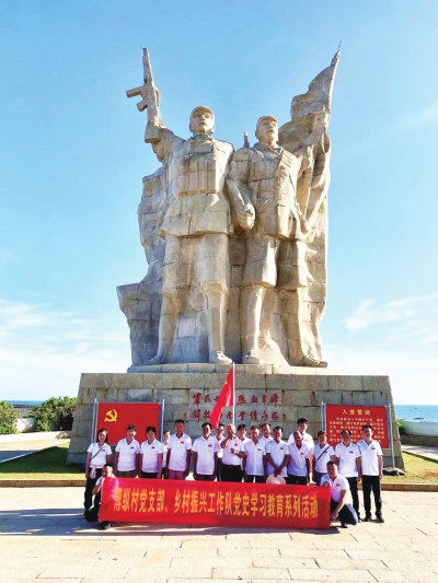 博纵是个纯渔业小村,户籍人口629人,常住村人口约200余人。因为没有贫困户,所以没有每年贫困资金的补助。对于集体经济几乎为零的村委来说,打造临高国际慢城(山海慢生活福地、国际慢设计海岸、临高慢文化客厅)试点区域,短时间弥补公共基础设施短板,任重而道远。但是工作队不等不靠,在为民办实事的同时,夯实基础,大力加强党支部建设,充分发挥好村党员和驻村工作队的模范带头作用。比如,在党建方面:工作队完善“三会一课”制度;开展党建活动,现场学习“七一”重要讲话精神;在临高角开展党员宣誓活动,强化入党初心;邀请熟悉本村情况的镇领导讲授党课;在村委会办公室改造中加入党史学习教育展板内容,用润物细无声的方式积极宣传、大力营造党史学习教育的浓厚氛围,激发党员群众奋勇争先、建功立业的干劲和热情。此外,针对本村十多年没发展党员的现状,在摸清情况的基础上,工作队决心打破观念束缚,消除工作中存在的人情阻碍,多方争取上级党委和村里老党员的支持,争取今年按程序发展4名年轻的预备党员,为博纵村的长远发展培育后备力量。