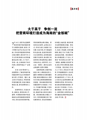 大干真干 争创一流 把营商环境打造成为海南的“金饭碗”
