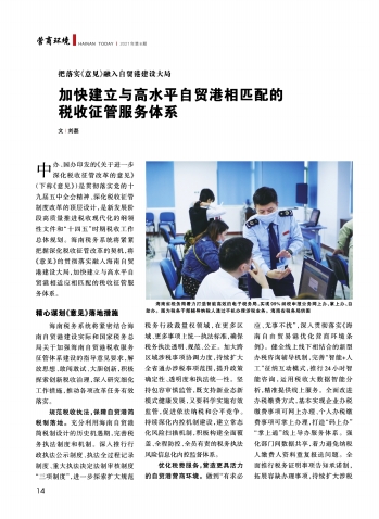 加快建立与高水平自贸港相匹配的税收征管服务体系