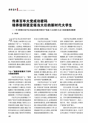 传承百年大党成功密码培养信仰坚定堪当大任的新时代大学生