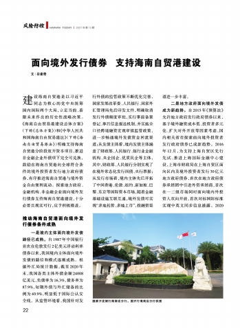 建设海南自贸港是以习近平同志为核心的党中央统筹国内国际两个大局,立足当前、着眼未来作出的历史性战略决策。《海南自由贸易港建设总体方案》(下称《总体方案》)和《中华人民共和国海南自由贸易港法》(下称《海南自由贸易港法》)明确支持海南自贸港分阶段放开资本项目,推进非金融企业外债项下完全可兑换,鼓励在海南自贸港向全球符合条件的境外投资者发行地方政府债券,有序推进海南自贸港与境外资金自由便利流动。探索地方政府、金融机构、非金融企业面向境外发行债券支持海南自贸港建设,十分必要且现实可行,应予积极推进。