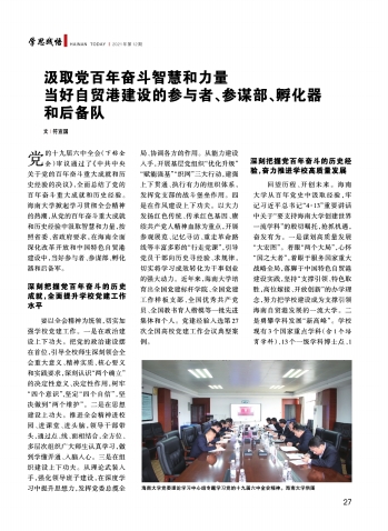 汲取党百年奋斗智慧和力量当好自贸港建设的参与者、参谋部、孵化器和后备队