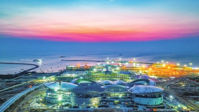 海口国际免税城项目施工现场灯火通明。陈元才/摄