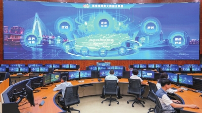 海南省政务数据大厅内,大屏幕实时更新着各领域政务数据。张茂/摄