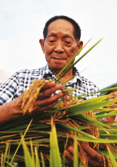 袁隆平一生淡泊名利,无私奉献,扎根于稻田之间、泥土之上,以毕生精力致力于杂交水稻的研发,用“钉钉子”的实际行动诠释了科学家精神的深刻内涵。1971年,袁隆平为了更快地解决粮食问题,将“野败”和所组配的材料无偿贡献出来,短时间内国内数百名科研人员,带着上千个水稻品种进行南繁选育,实施了上万个组合的回交转育,得到多个表现优良的杂交水稻组合。袁隆平不图名,湖南省农业科学院院长一职被他以“耽误研究”为由婉拒了,他还常常公开表示杂交水稻不只是他一个人的功劳。袁隆平不图利,他将联合国教科文组织发的奖金全部捐出并成立了“袁隆平杂交水稻奖励基金会”,还时常自掏腰包奖励从事杂交水稻科研与推广的人员……他的愿望只是想要农民不再挨饿。袁隆平的一生都在田野上奋斗,为了完成“禾下乘凉梦”“杂交水稻覆盖全球梦”,他不断追求水稻的高产再高产,为了中国人能将饭碗牢牢抓在自己手里,不断攻克一个又一个的难题,刷新一年又一年的水稻亩产量。正是因为袁隆平这种不断追求、勇于探索、精益求精的精神,才让现在的世界粮食问题得到了很大的缓解,更多人能吃上饭、吃饱饭。