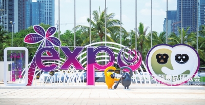 海南国际会展中心的消博会吉祥物雕塑。袁琛/摄