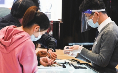 1月25日,游客在中免集团海口日月广场免税店选购免税商品。杨冠宇/摄