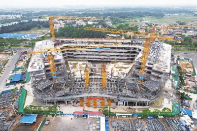 图为海口江东新区江东发展大厦。该项目由中建三局(海南)有限公司承建,总建筑面积89356.01平方米,地上部分采用装配式钢结构体系。