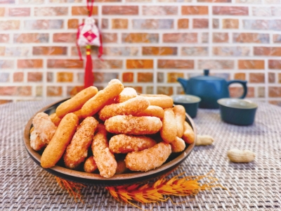 京果是有独特腔调的。圆柱形的京果小巧饱满,若小拇指般粗细,有的活似长花生。未裹糖的京果色泽金黄,温润可人。侧逆光下,它浑身通透,仿佛童年里遥想一桩单纯的心事。轻折一颗京果,里面呈现蜂窝状,横断面像极了海南火山岩石,布满了许多不规则的小孔,让人思绪纷飞到不同寻常的通道与光阴。