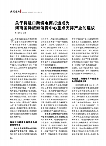 关于将进口跨境电商打造成为海南国际旅游消费中心重点支撑产业的建议