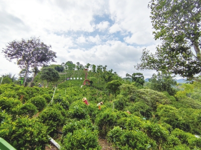 高山云雾出好茶。位于五指山脚下的水满乡平均海拔600米,是海南海拔最高的乡镇,昼夜温差大,云雾常年笼罩,水汽充足,得天独厚的自然生态优势特别适合茶树生长。2018年以来,水满乡党委带领党员干部走进深山老林,进行了大量调查研究,带领村民发展林下经济,种植大叶茶,还通过保护价收购、利润返还等方式,引导茶企与农民合作,建立农业专业合作社。靠着这片“黄金叶”,2019年水满乡顺利实现脱贫“摘帽”。