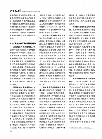 今日海南决策参考45关于打造“黄金海岸”旅游线的战略思考 2023-06-15 2 2023年06月15日 星期四