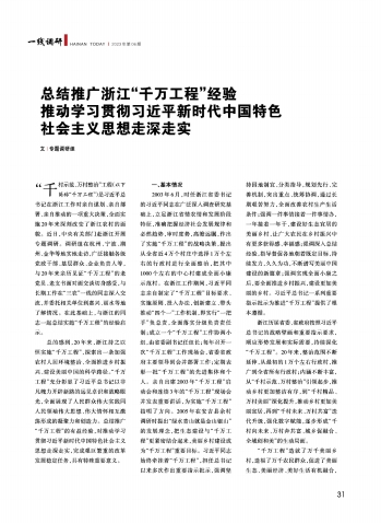 总结推广浙江“千万工程”经验推动学习贯彻习近平新时代中国特色社会主义思想走深走实