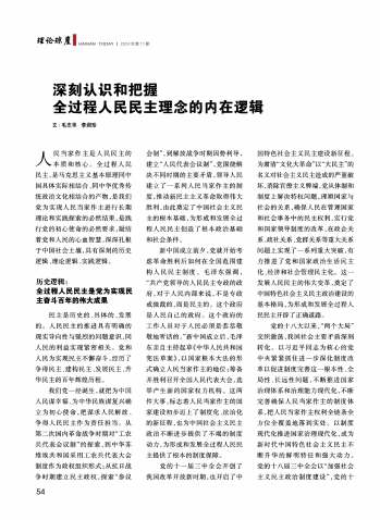 深刻认识和把握全过程人民民主理念的内在逻辑