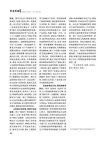 业态融合启新程,链群升级绘蓝图。要以“渔旅文”深度融合为突破口,打造“热带风情+海洋经济”特色产业集群。在蜈支洲等区域试点“生态牧场+”模式,培育夜间海钓、海底研学、珊瑚认养等沉浸式体验项目,开发渔家非遗工坊、海洋艺术市集、碳汇主题酒店等文旅融合产品线。依托琼海潭门渔港等渔镇,建设集种质保育、生态养殖、加工体验于一体的渔业综合体,推出石斑鱼预制菜、龙虾肽化妆品等高附加值产品。延伸产业链条,构建“前港—中区—后城”空间布局,建设水产精深加工园,研发即食海珍品、海洋生物活性提取物等系列产品;培育“海南鲷”“热带珊瑚礁”等地理标志品牌。依托自贸港政策,发展跨境电商直播基地,建立“区块链+冷链物流”质量追溯体系,打造“24小时鲜达”供应链。发挥经济圈作用,强化要素支撑,通过飞地合作等模式建设礁体材料研发生产基地;建立海洋牧场专业服务联盟,发展海洋工程咨询、碳汇金融等生产性服务业。创新“海洋产业基金+离岸金融”投融资模式,试点水产仓单质押融资,推动产业链上下游协同发展,构建生态价值、产业价值与资本价值间转化闭环。