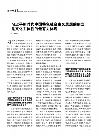习近平新时代中国特色社会主义思想的创立是文化主体性的最有力体现