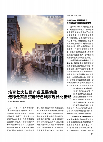 培育壮大住建产业发展动能走稳走实自贸港特色城市现代化新路